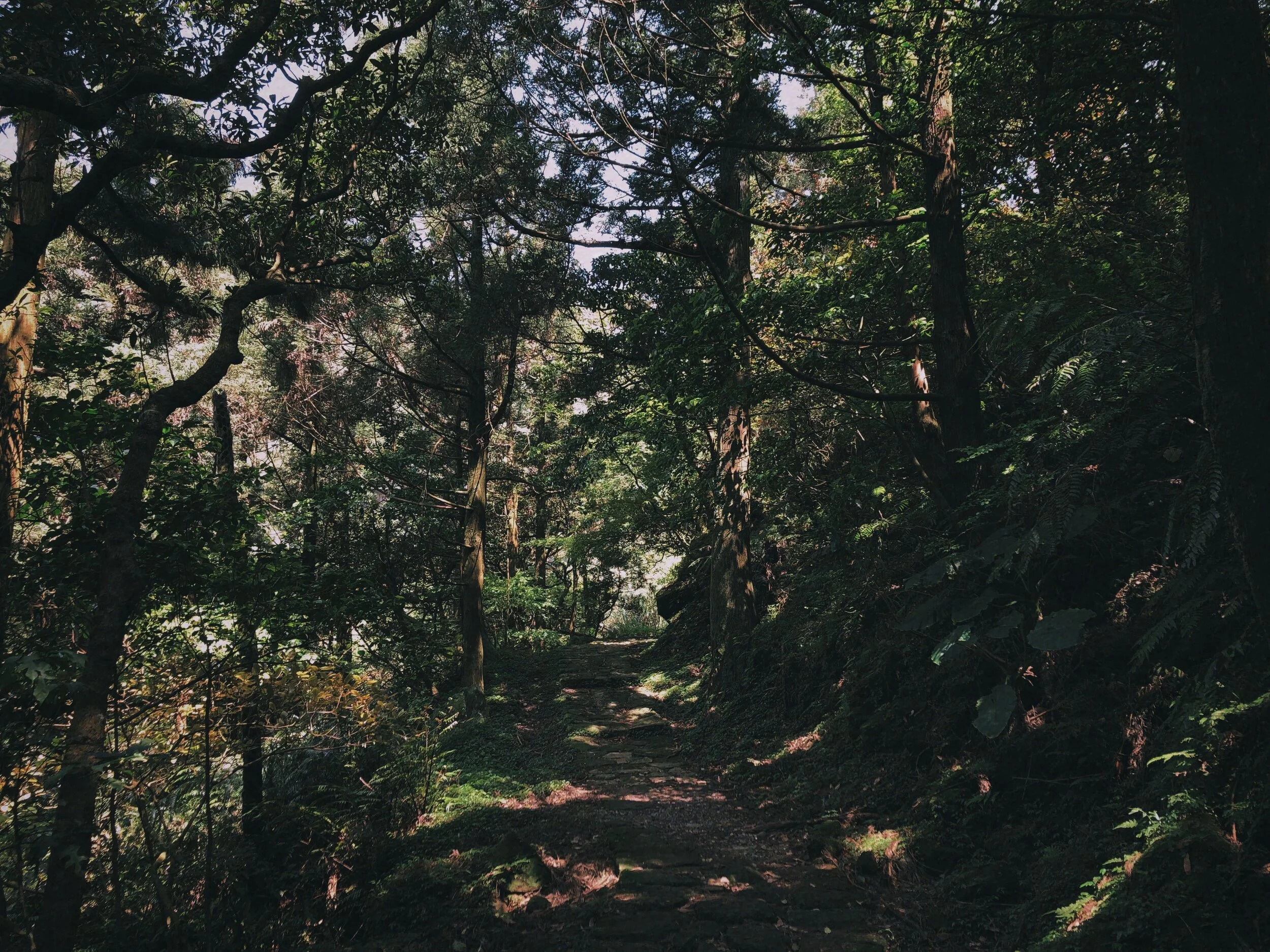 走在枯枝落葉已腐爛成泥的柔軟小徑,或是石塊乾砌而成的石板路徑上,陽光從枝葉穿梭而下,還帶著涼意的森林增添了一些溫暖的舒適感。